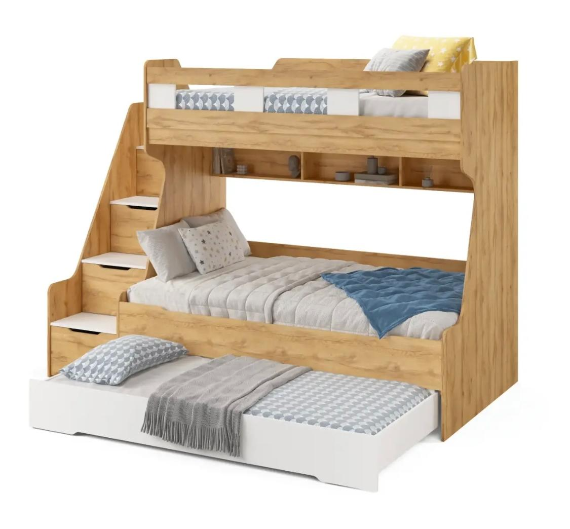 Высокая нагрузка на спальные места. Дополнительное выдвижное спальное место. Удобная лестница. Высокий, безопасный бортик. Прочные ящики! |